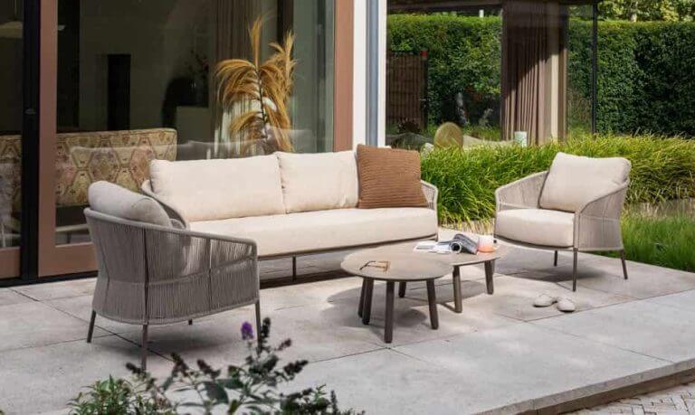 - Natuurlijke uitstraling: De latte rope bekleding geeft de bank een natuurlijke, warme en vriendelijke uitstraling, perfect voor een ontspannen buitenomgeving.